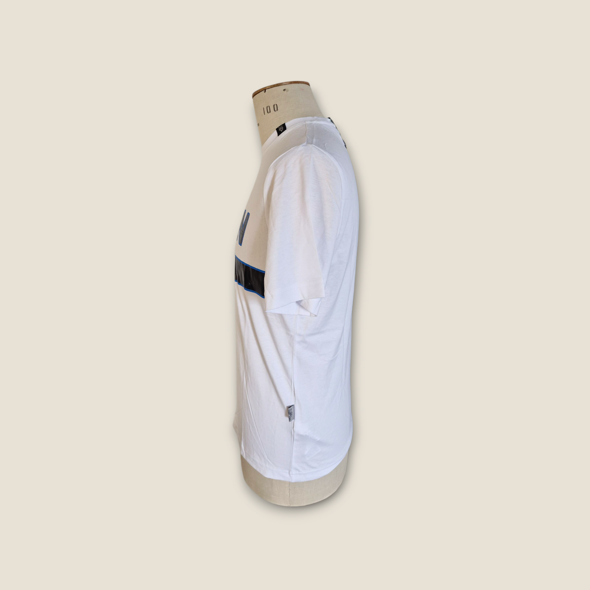 The Philipp Plein Sport T-Shirt features a clean white design accented with the distinctive Plein Sport logo, blending sporty aesthetics with modern style. Crafted for comfort and durability, this t-shirt is ideal for active wear or casual outings, offering a sleek look that keeps you at the forefront of contemporary sports fashion. Perfect for those seeking a versatile wardrobe staple that combines quality and brand prestige. RRP £165.